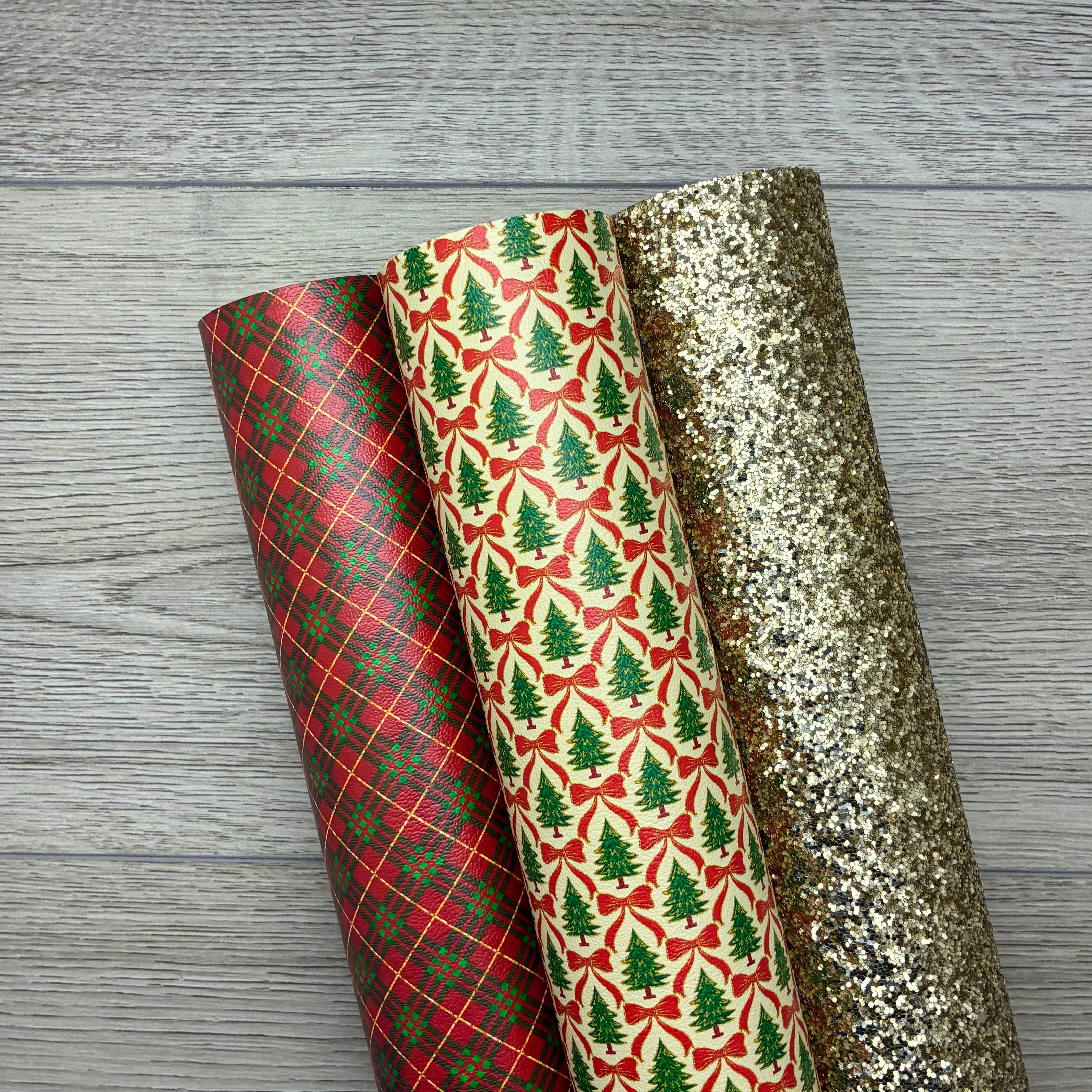 Retro Glitter Coquette, Gold Glitter, Green red gold Plaid