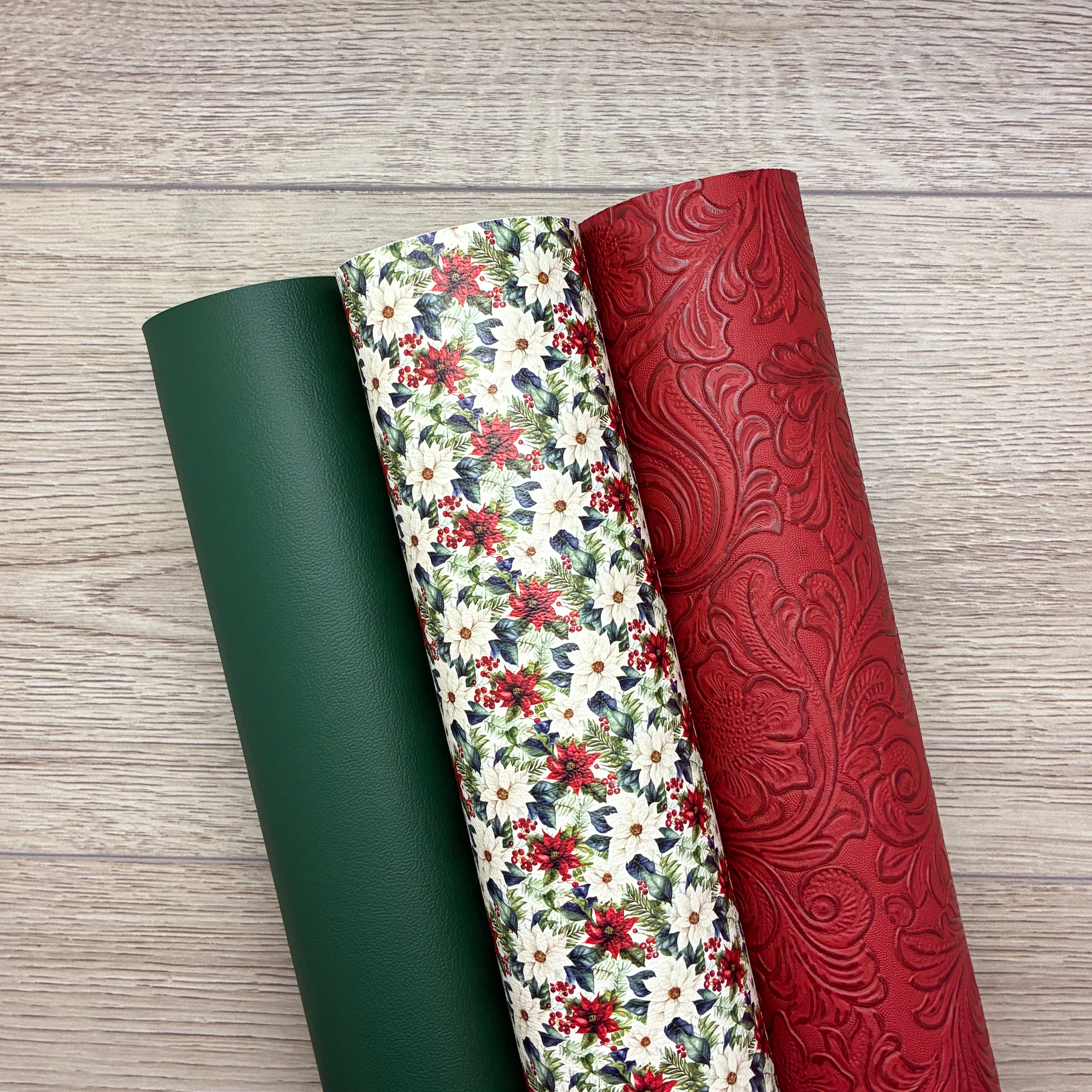 Watercolor Poinsetta 2025, Footloose Embossed, Mountain Meadow Solid
