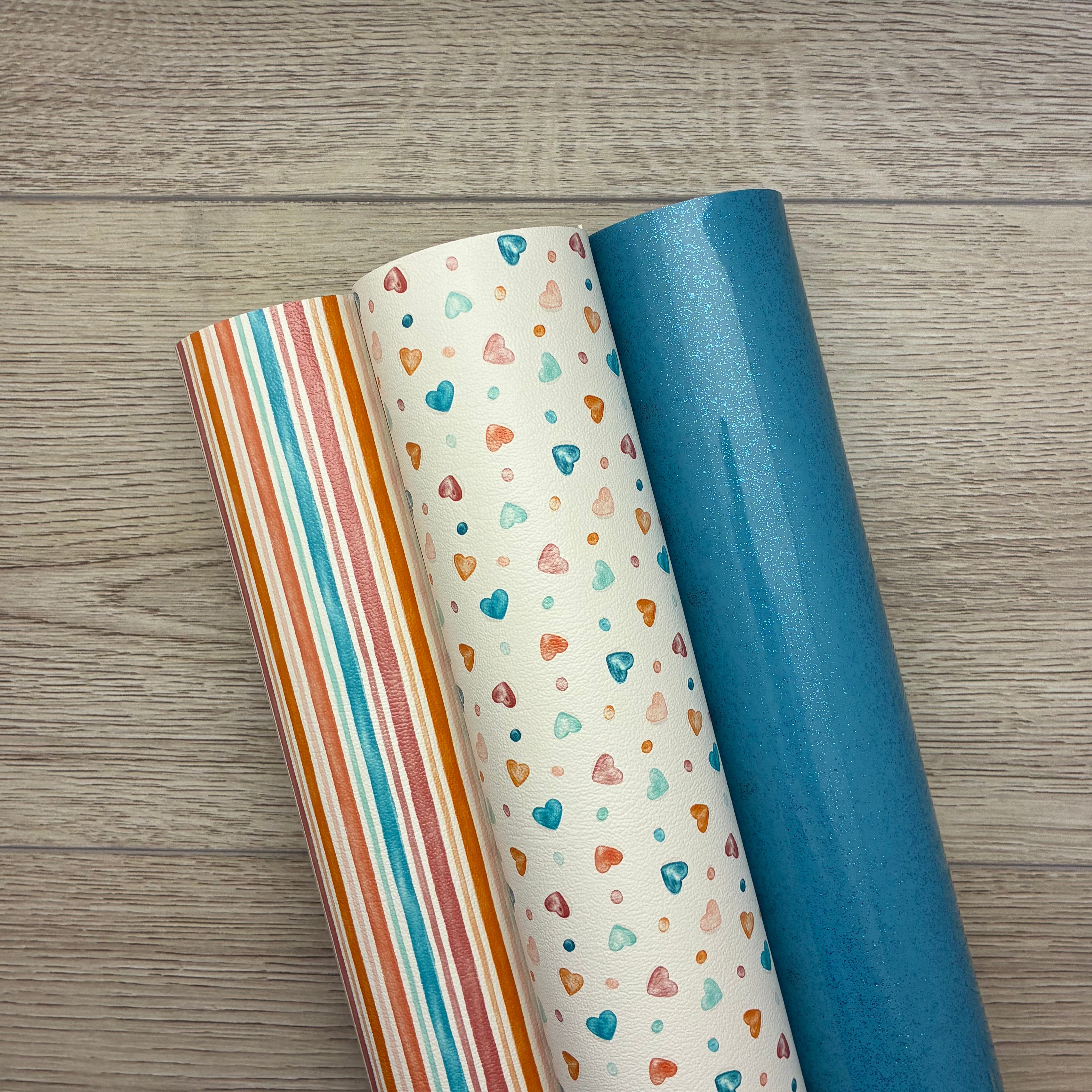 2 Prints: Pastel Hearts, Stripes, Icy Blue Glossy