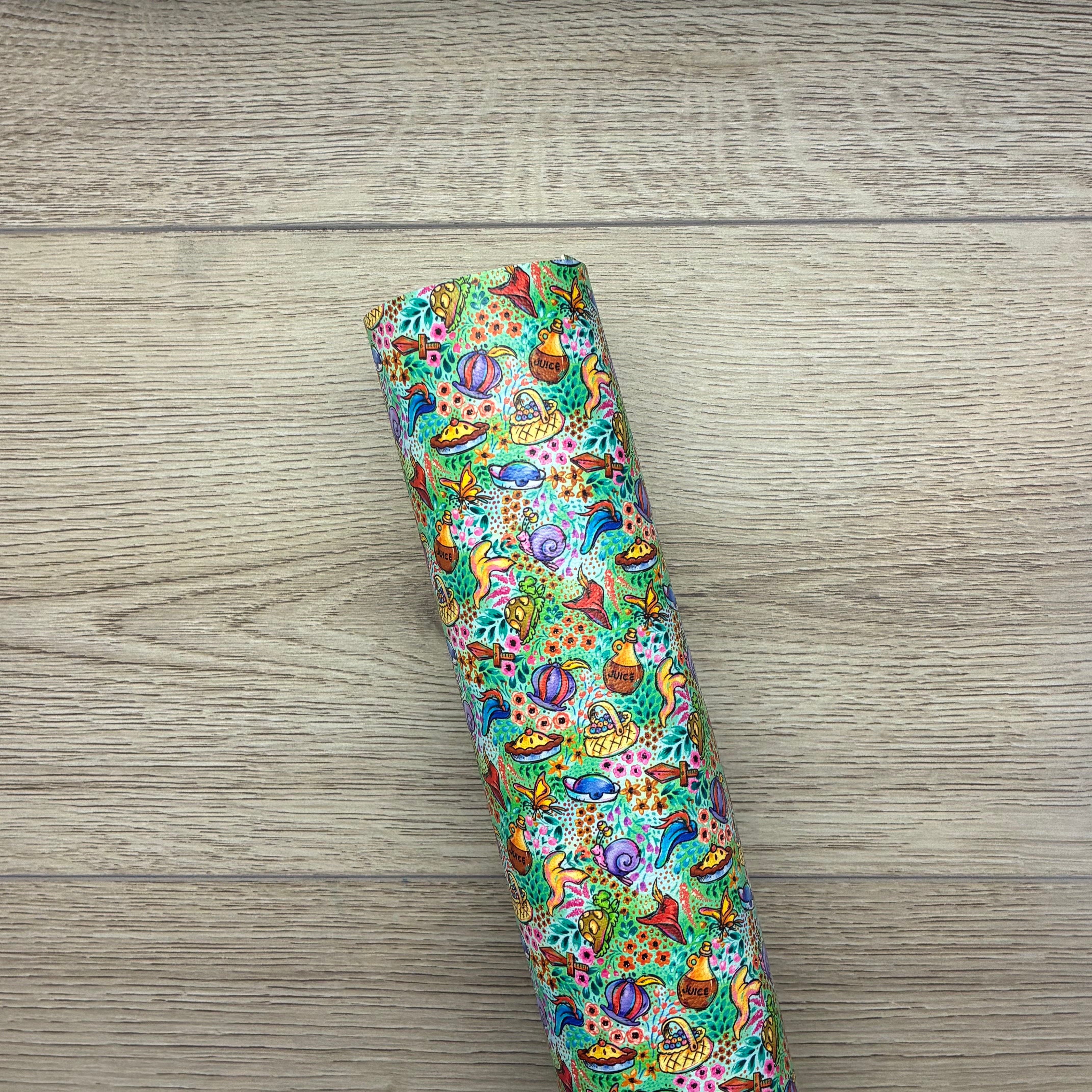 Soft printed vegan leather.
