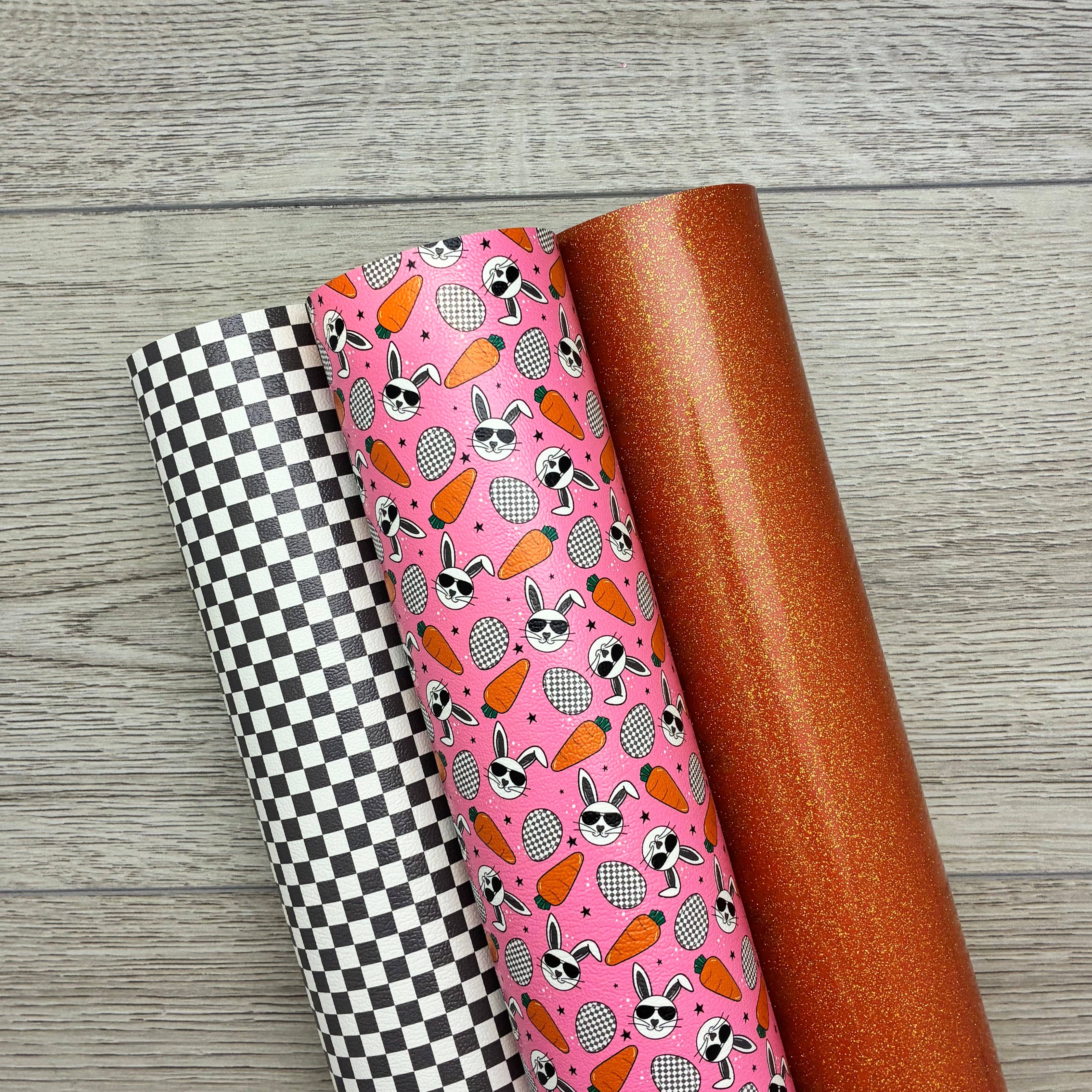 Boy Bunny Sunglasses and Carrots, Tiny Black and White Checkers, Orange Crush Glossy