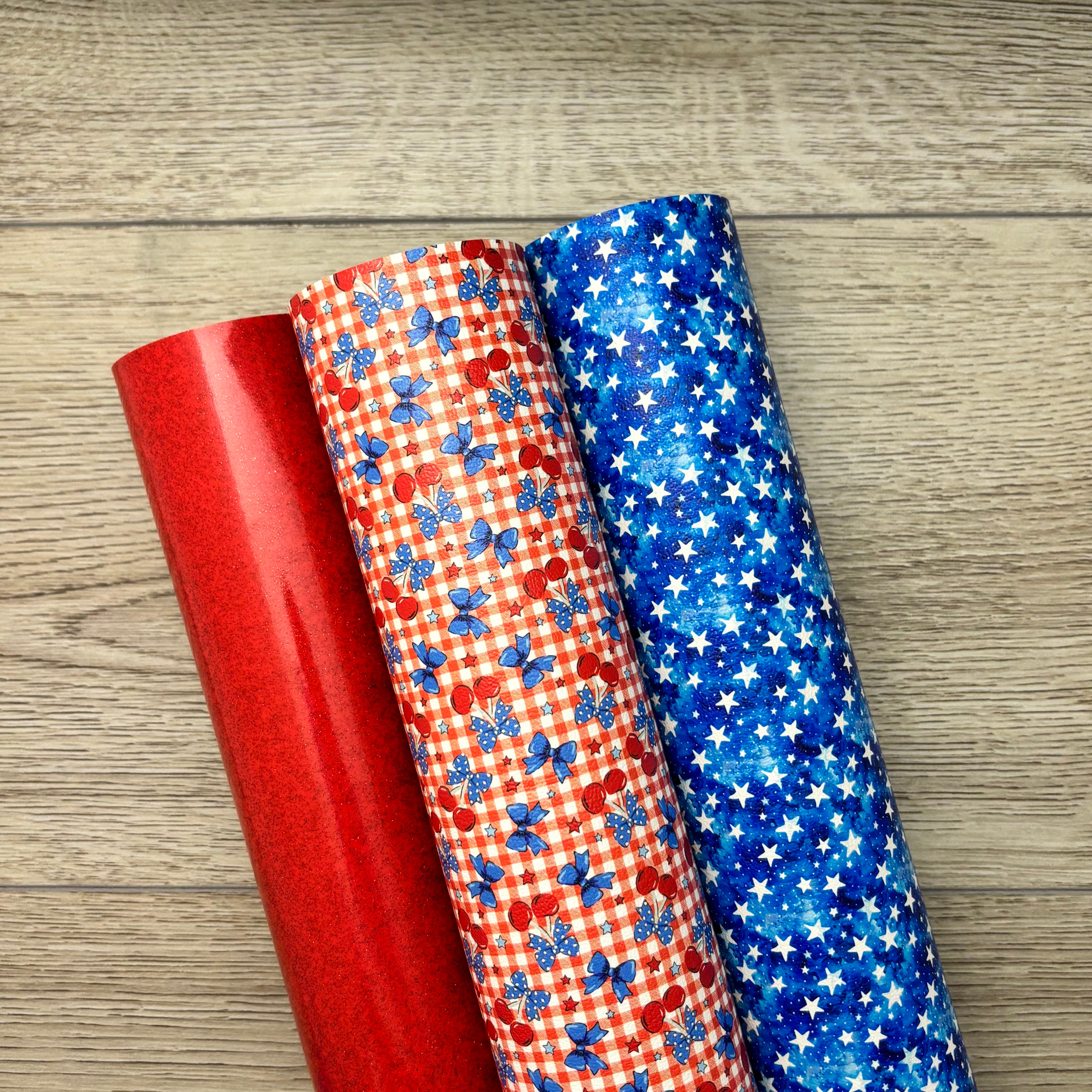 Route 66 Glossy, Cherries and Blue Bows Gingham, Red White Blue watercolor Mouse Stars