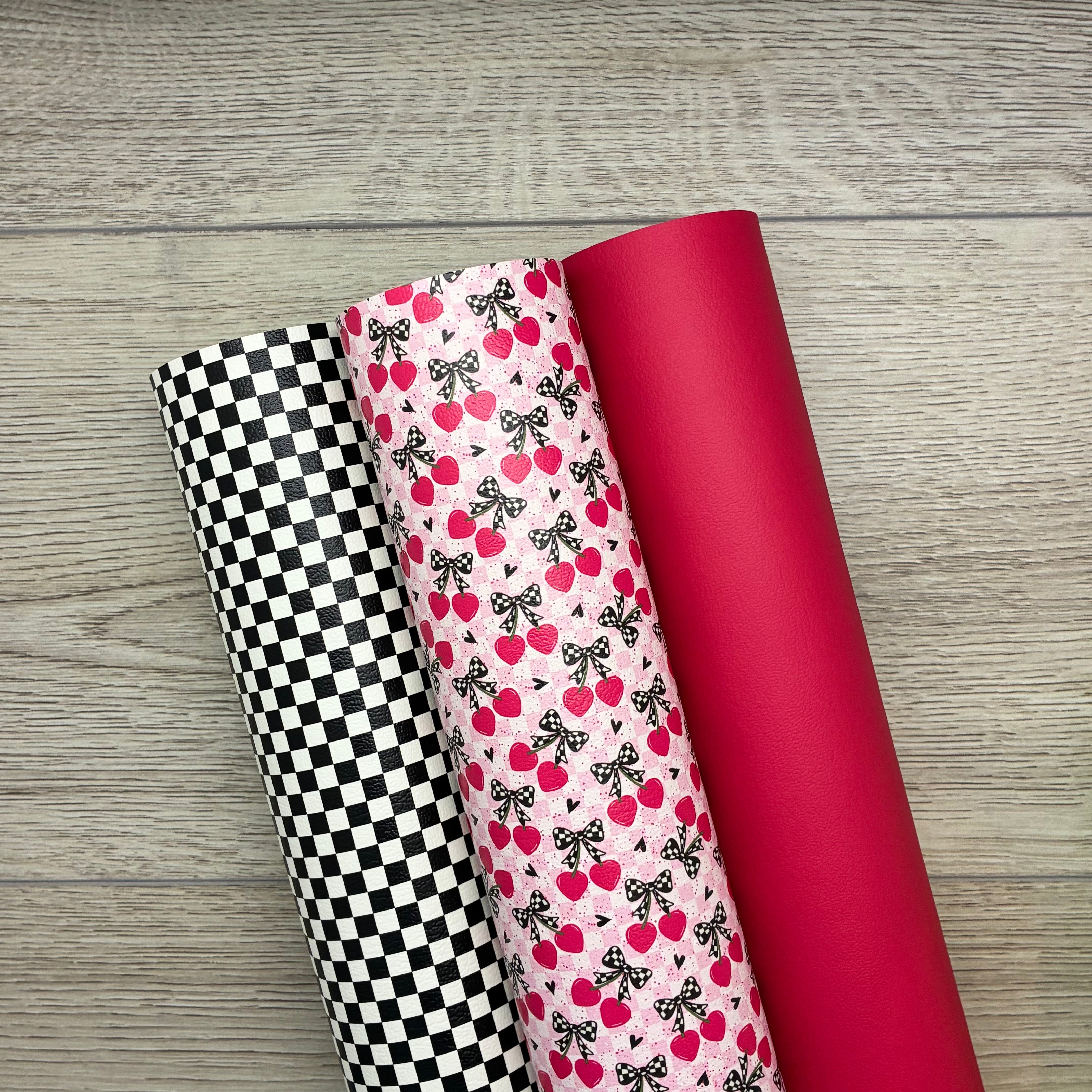 2 Prints: Hot Pink Checkered Coquette, Tiny Black and White Checkers, Bubble Gum Solid