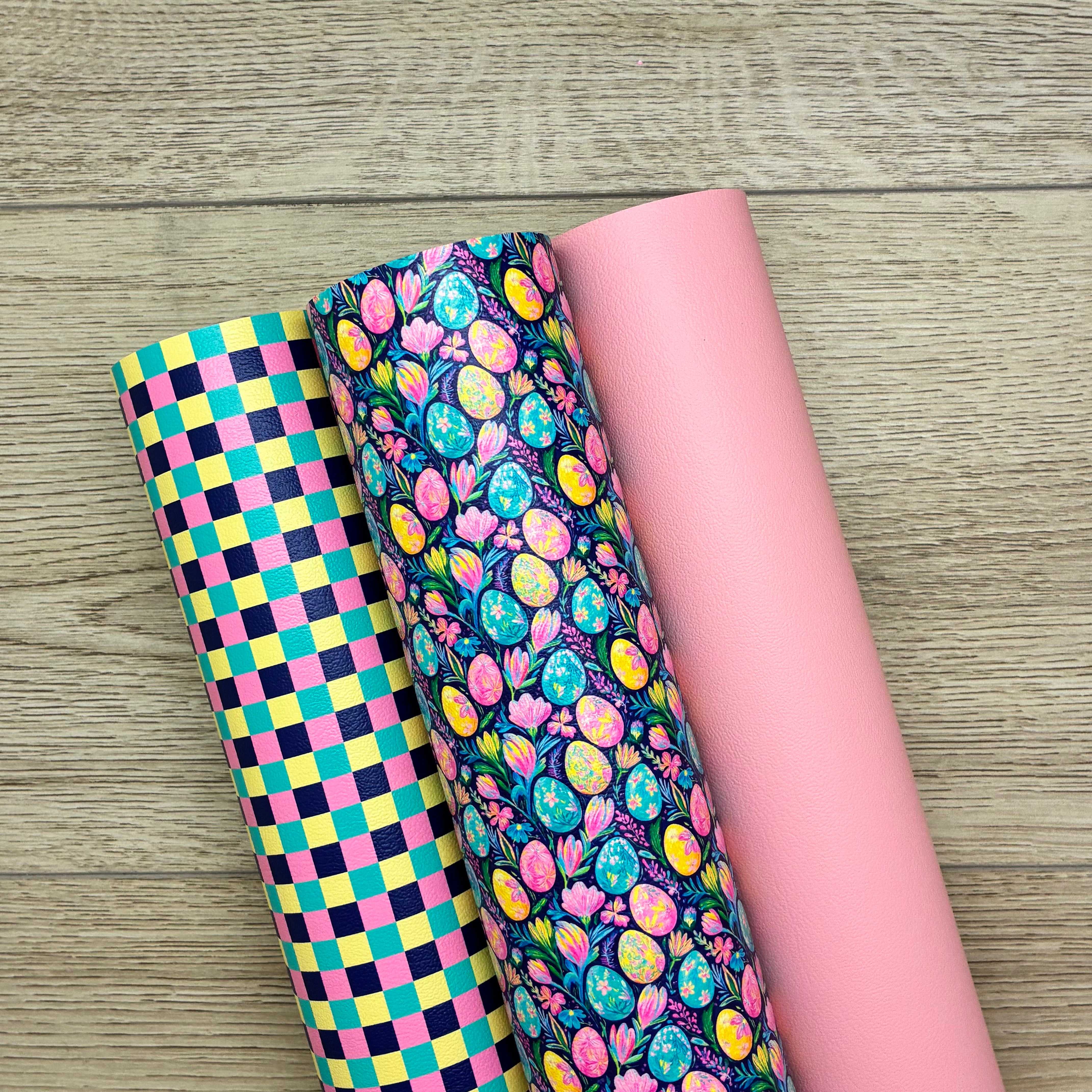 Preppy Painted Floral Eggs, Checkers, Cotton Candy Solid