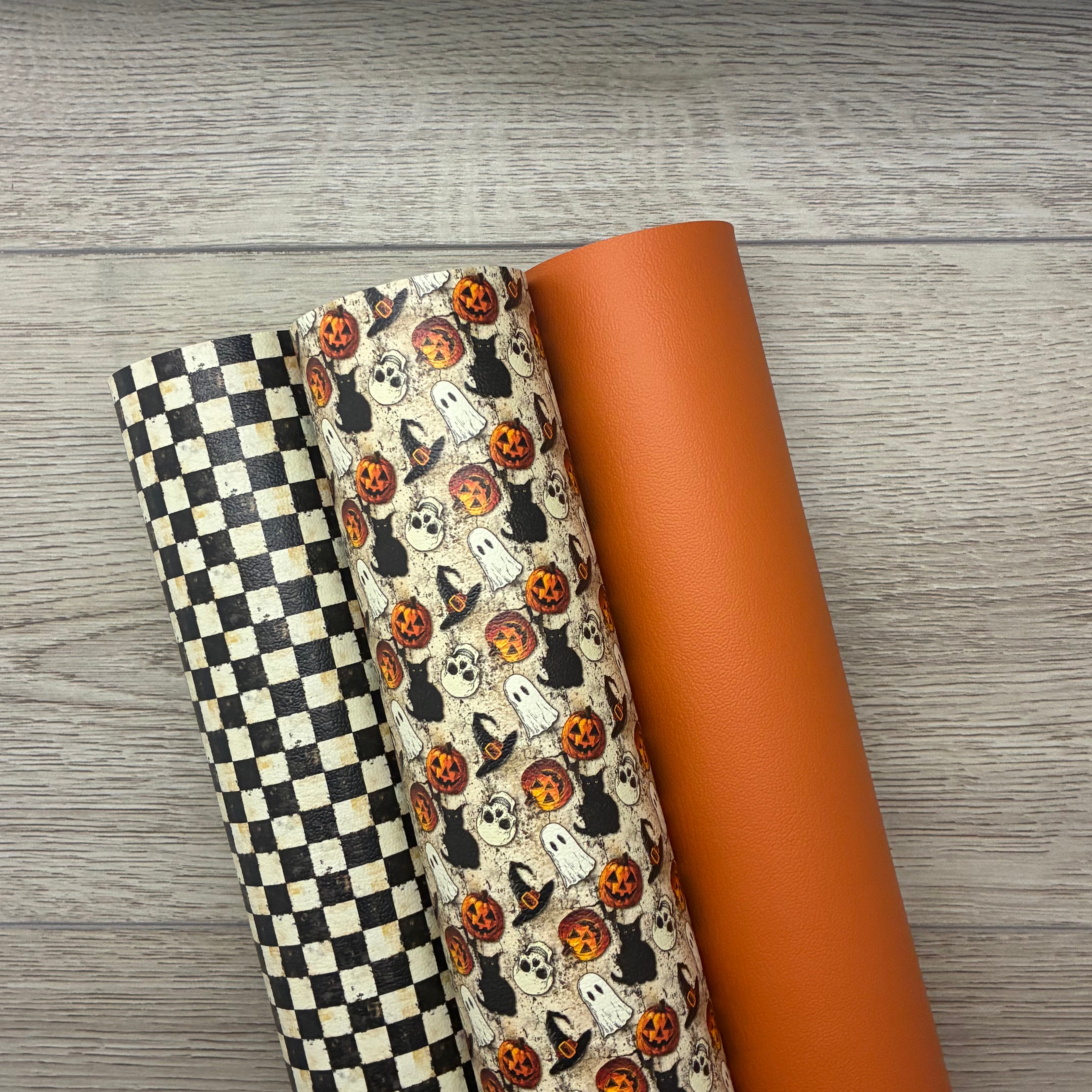 2 Prints: Pumpkins Hats Cats Oh My, Creepy and Cozy Checkers, Pumpkin Pie Solid