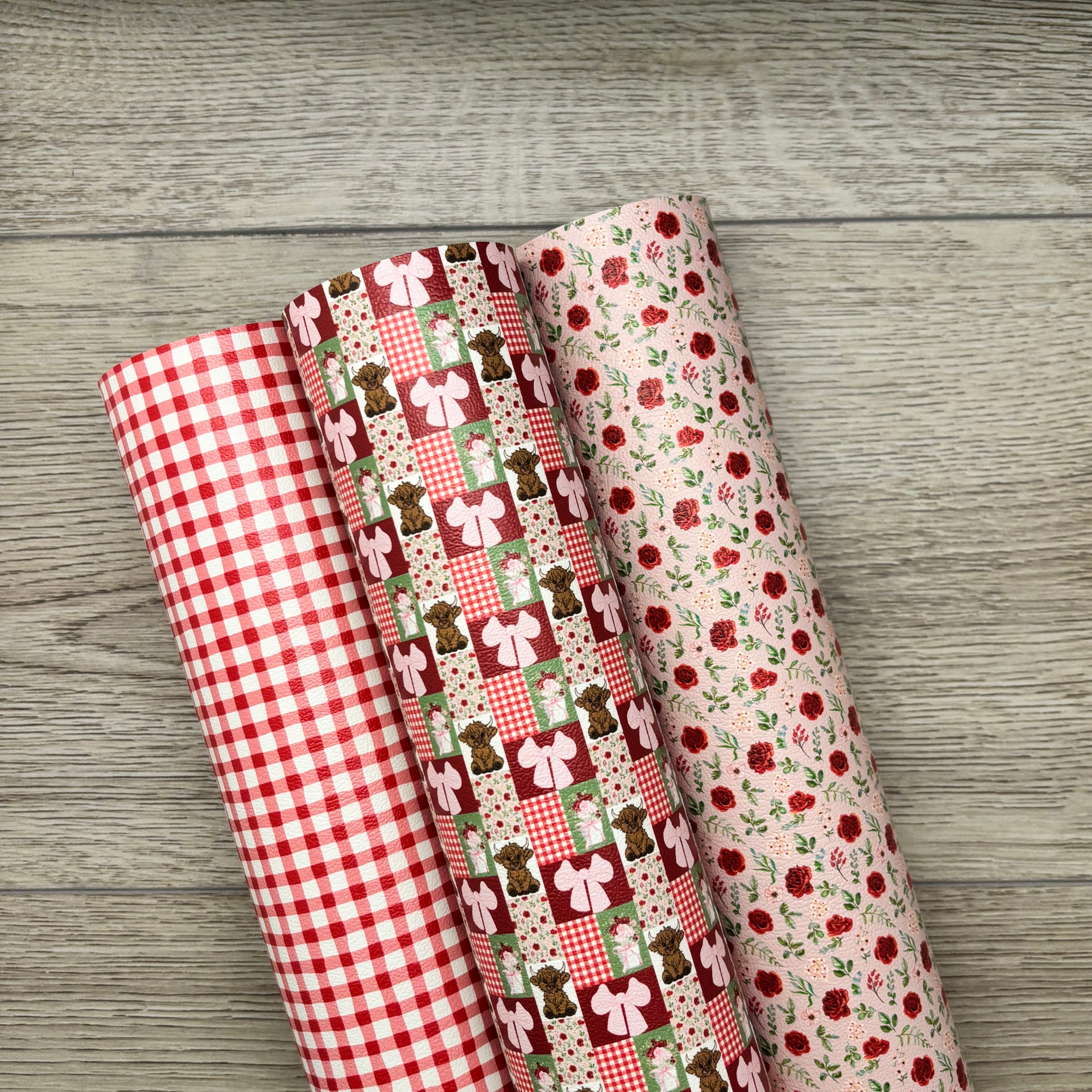 3 Prints: Red Highland Cow Patchwork, Flowers, Red Gingham