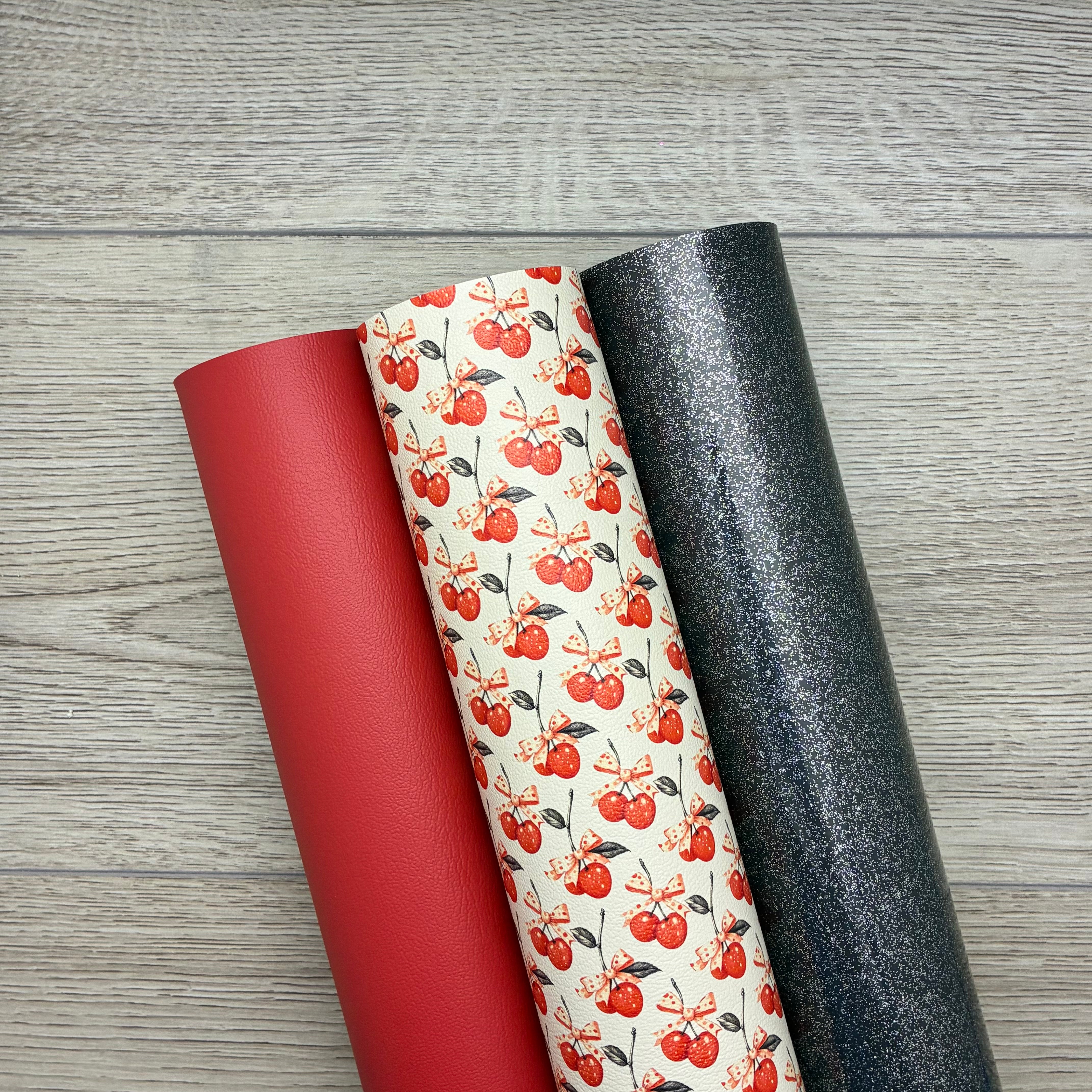 Retro Coquette Cherry Print, Brick Solid, Charcoal Glossy