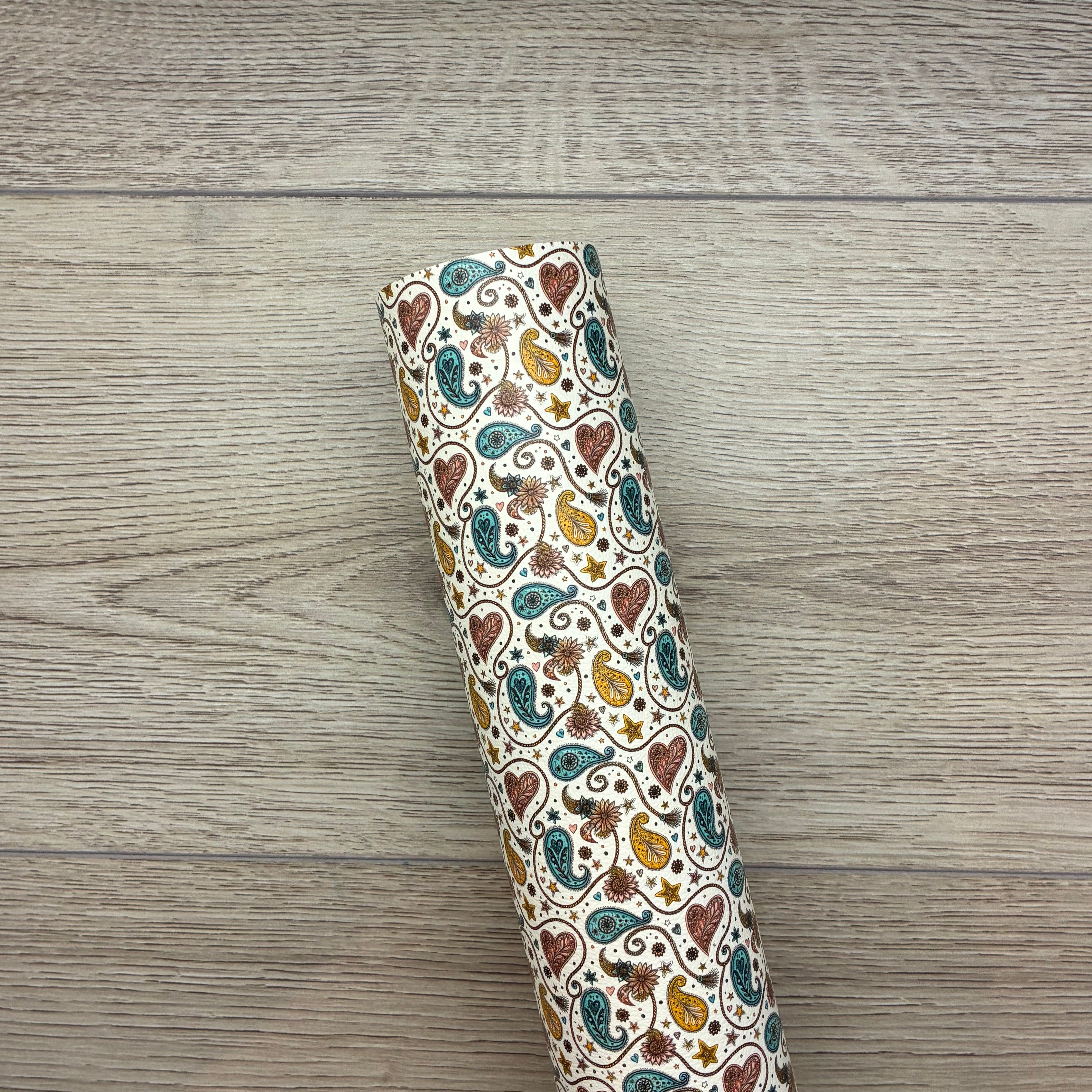 Soft printed vegan leather.